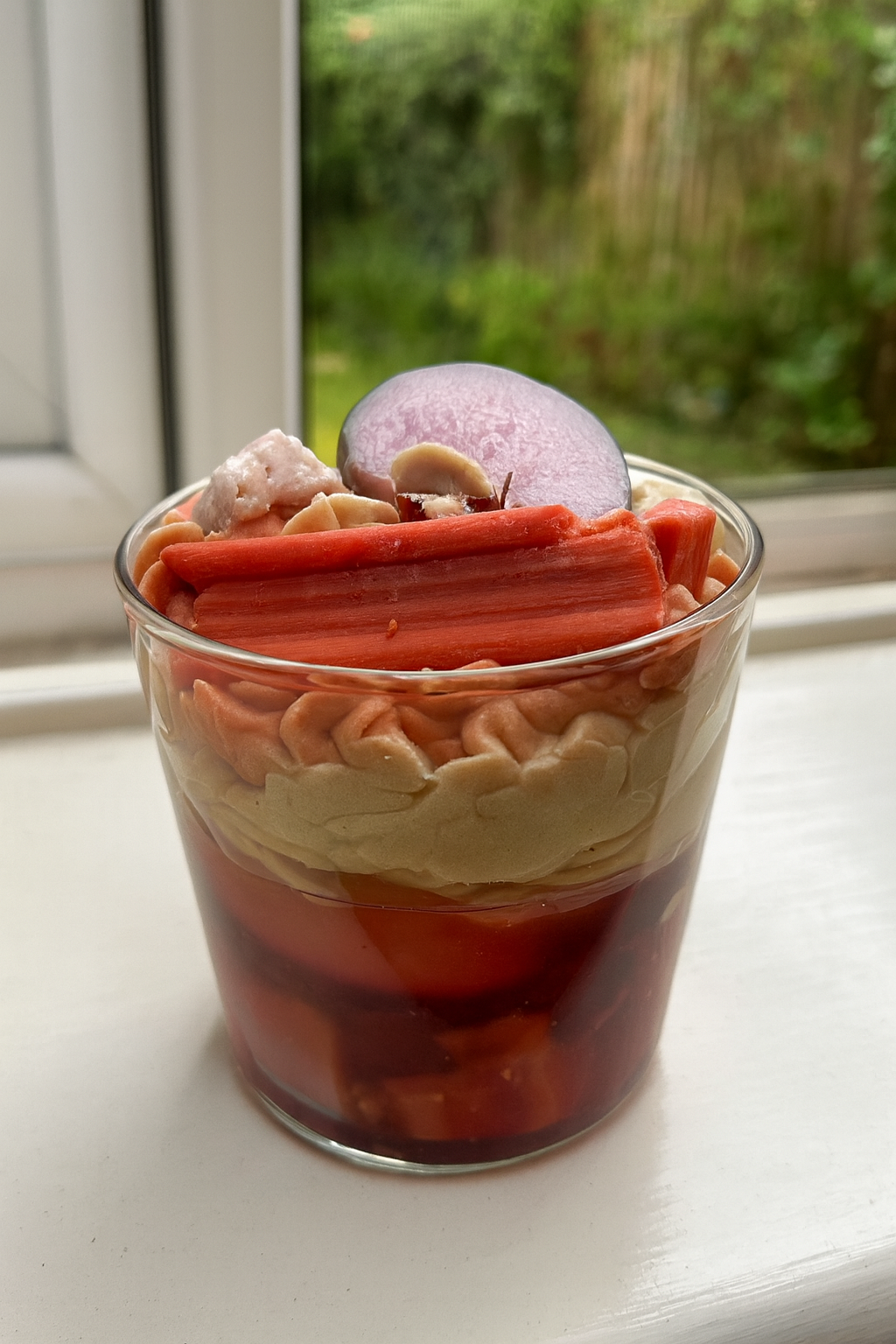 Black plum, fresh rhubarb, soft peach, pear & creamy vanilla — fruity, fresh and comforting.