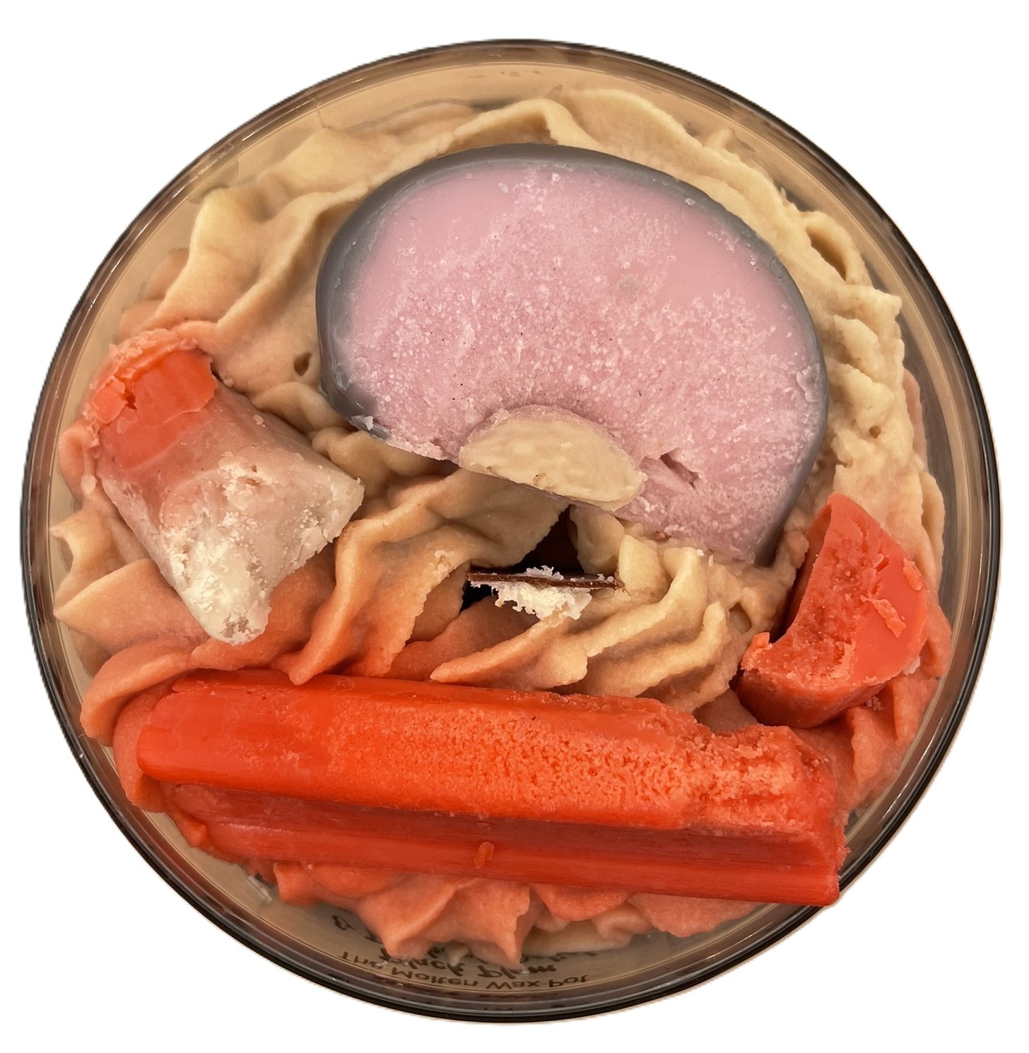 A countryside classic with a sweet twist. This dessert‑inspired candle is crafted with vegan soy wax, gel wax, and wax embedded fruit pieces for a cosy, eye‑catching finish.