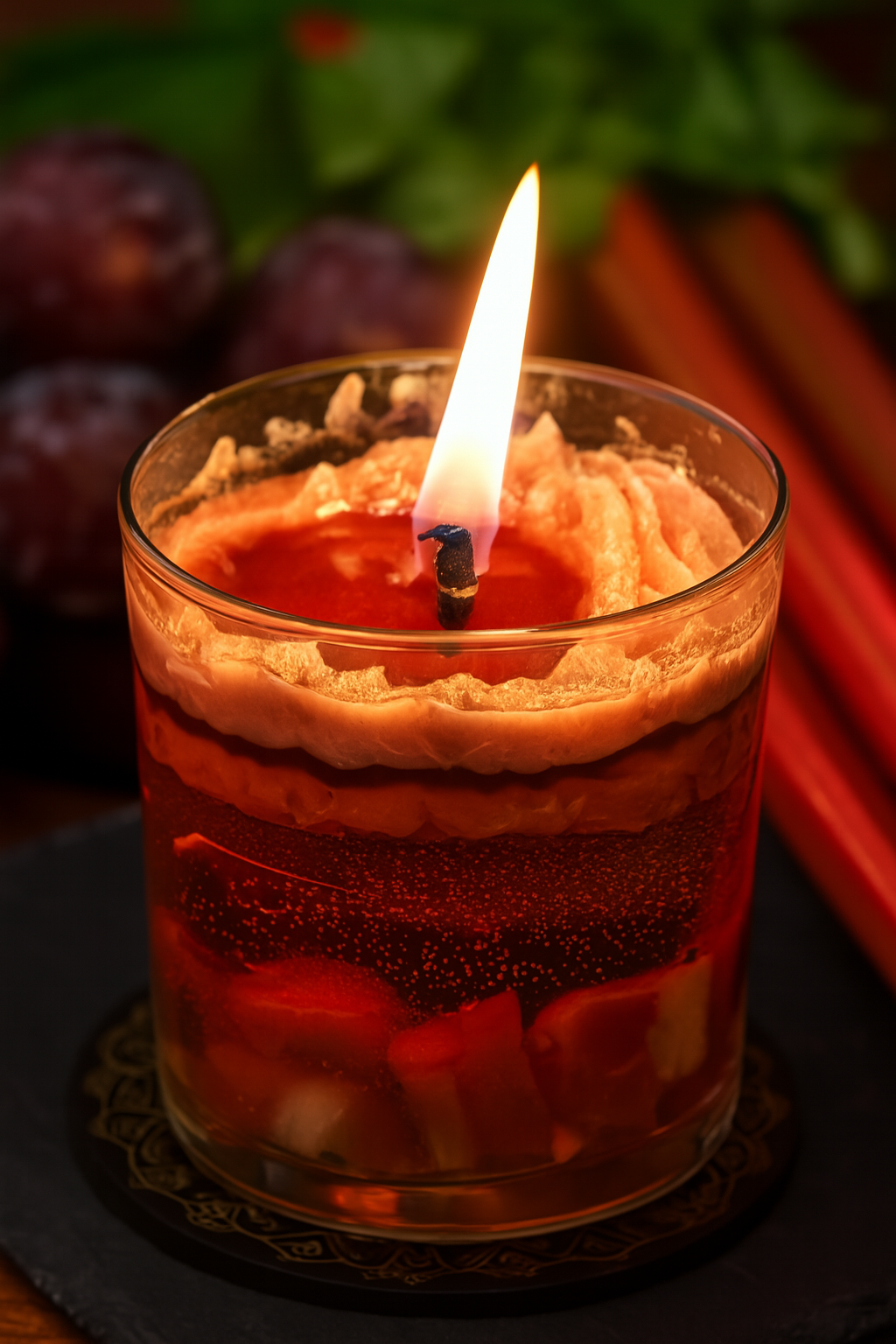 Black Plum Rhubarb Candle • Handmade Soy & Gel Wax • Fruit‑Embedded Decorative Candle