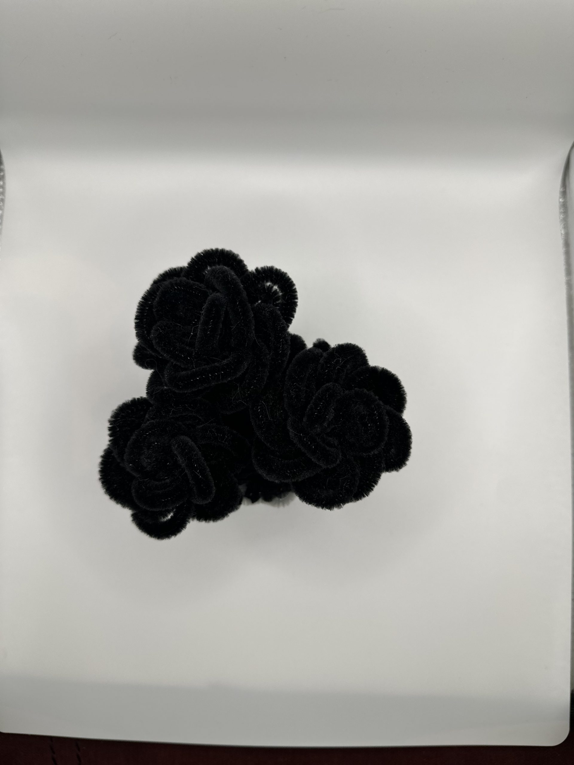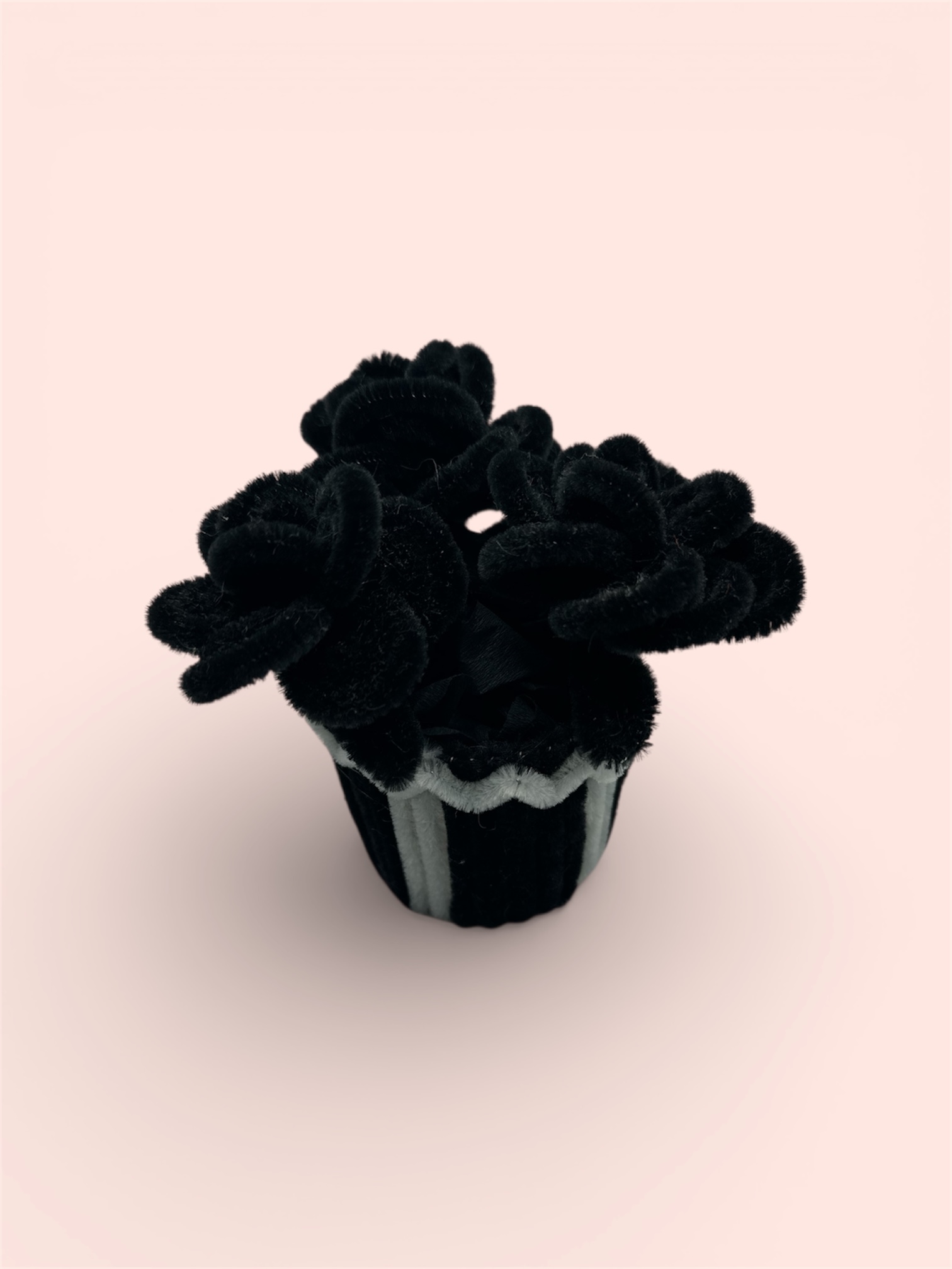 Elegant black rose cupcake, handcrafted from soft pipe cleaners.