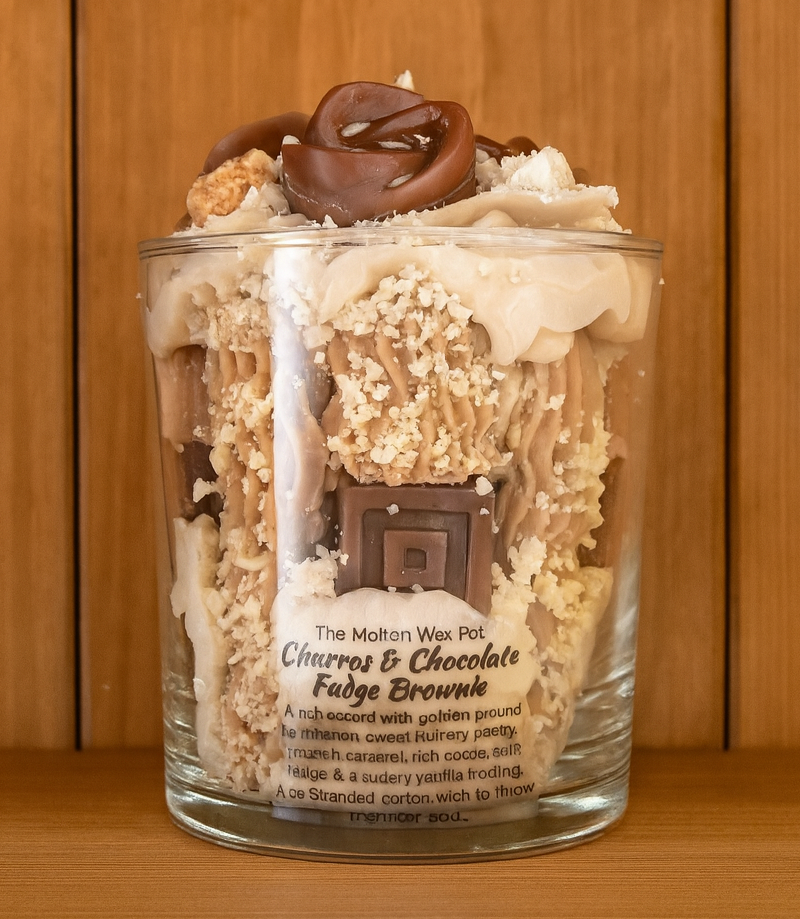 Bring home the cosy sweetness of warm churros and rich chocolate fudge with this handmade artisan candle by The Molten Wax Pot. Each piece is hand‑poured with vegan soy wax, detailed dessert toppings, and a beautifully warm glow — perfect for gifting or treating yourself.