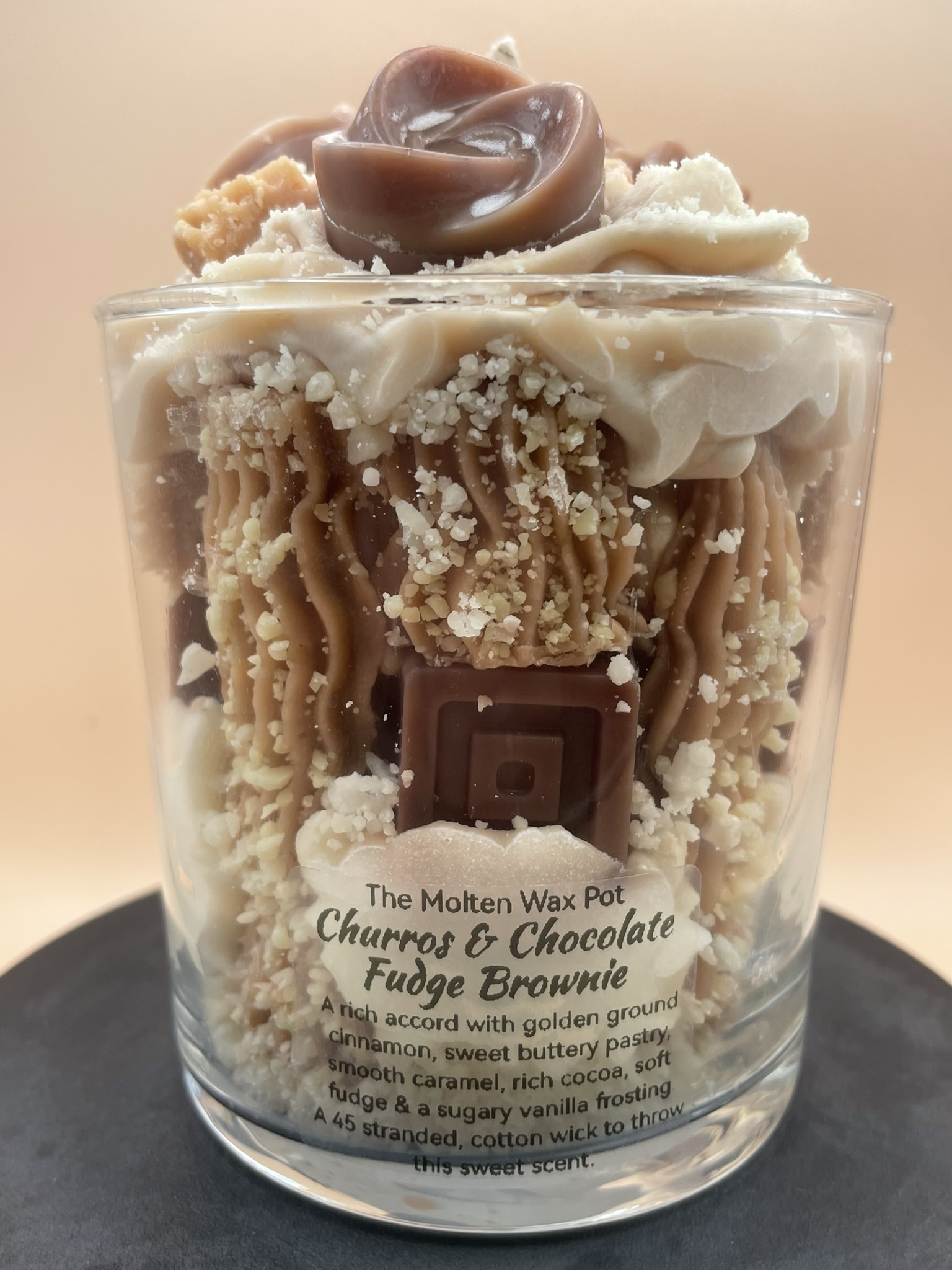 • Churros + brownie pieces in whipped wax