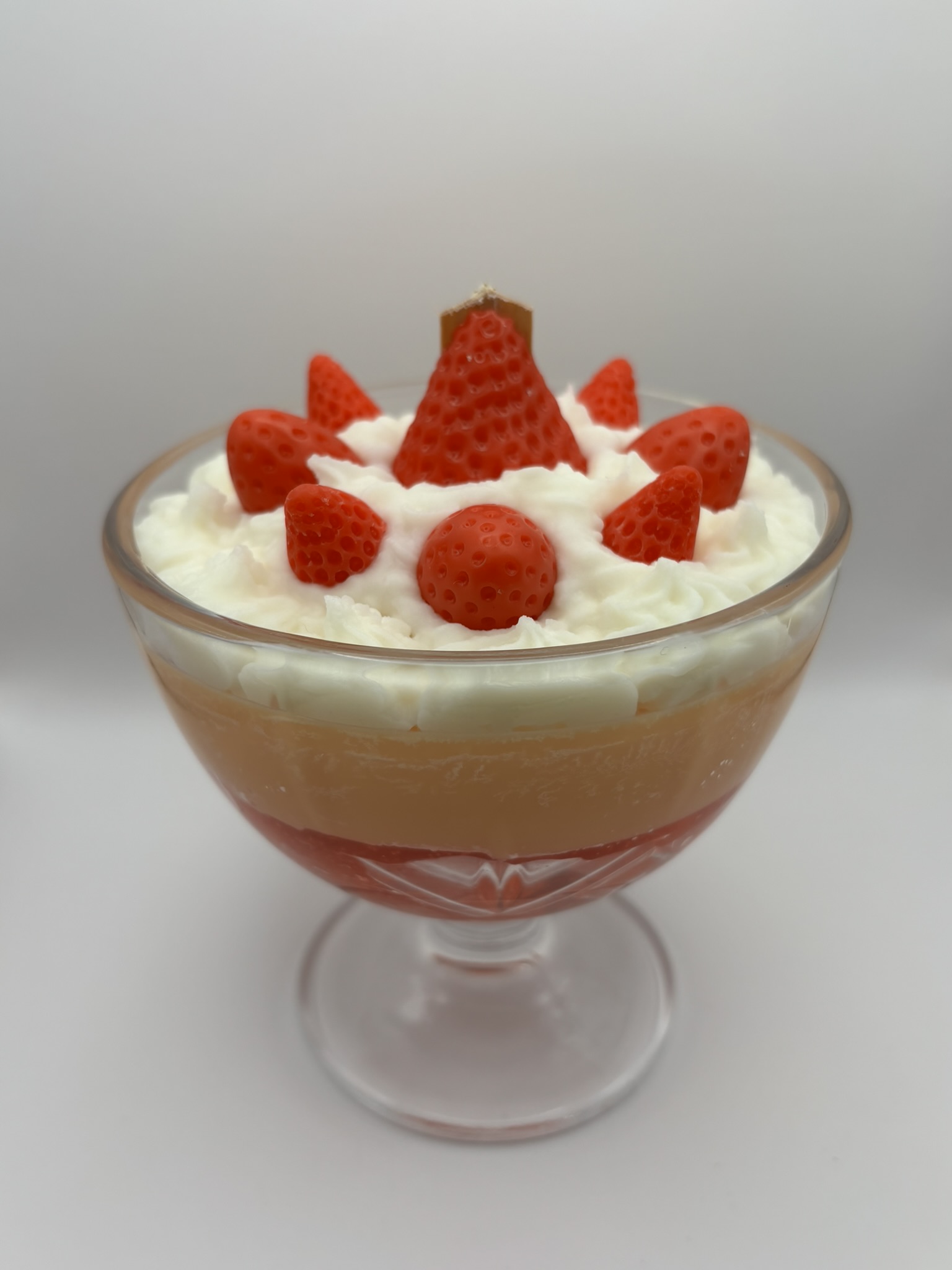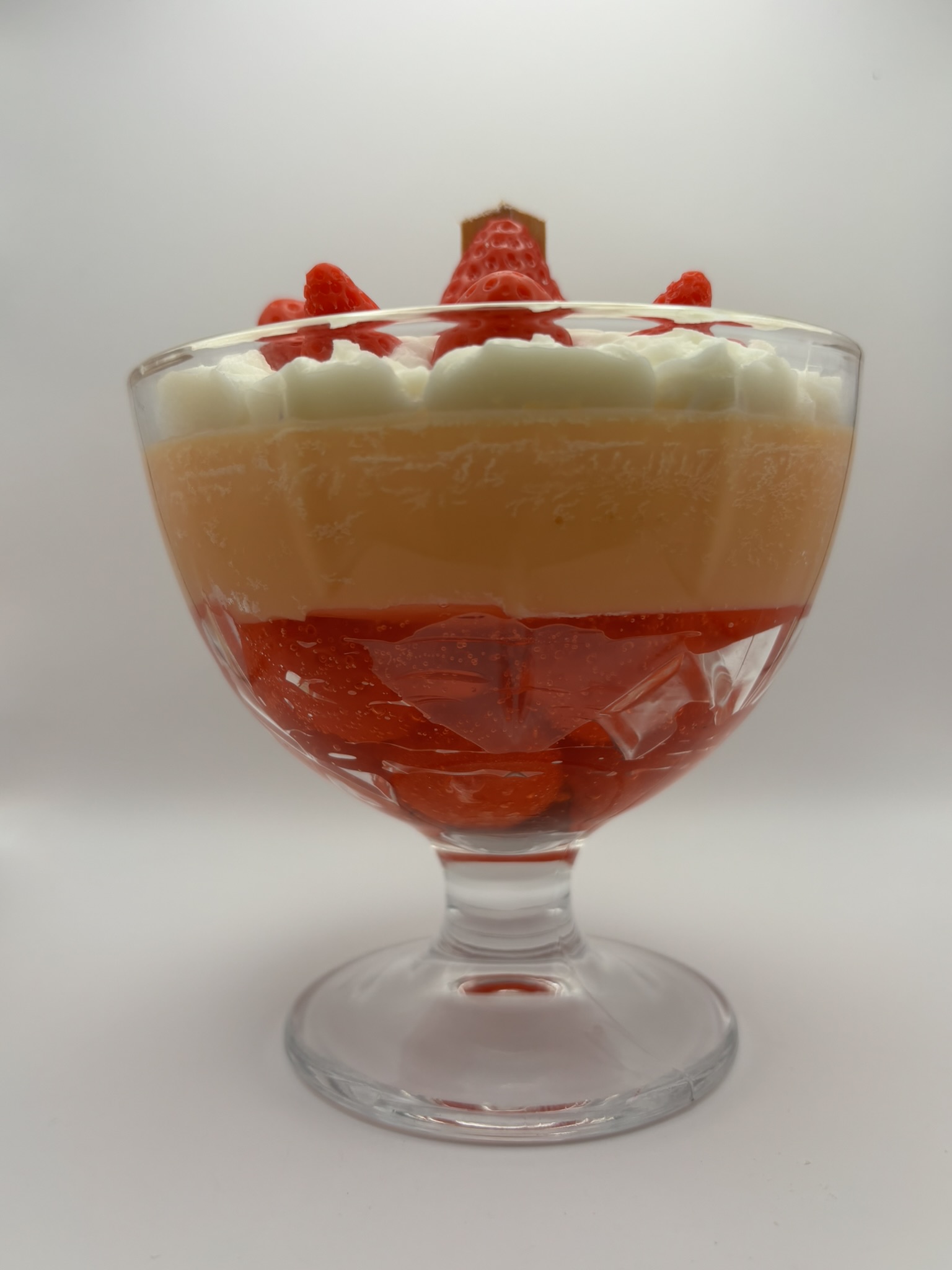 🍓 Handmade Strawberry Trifle Candle – Dessert Inspired • Dual Wick • Crackling Wood Wick
