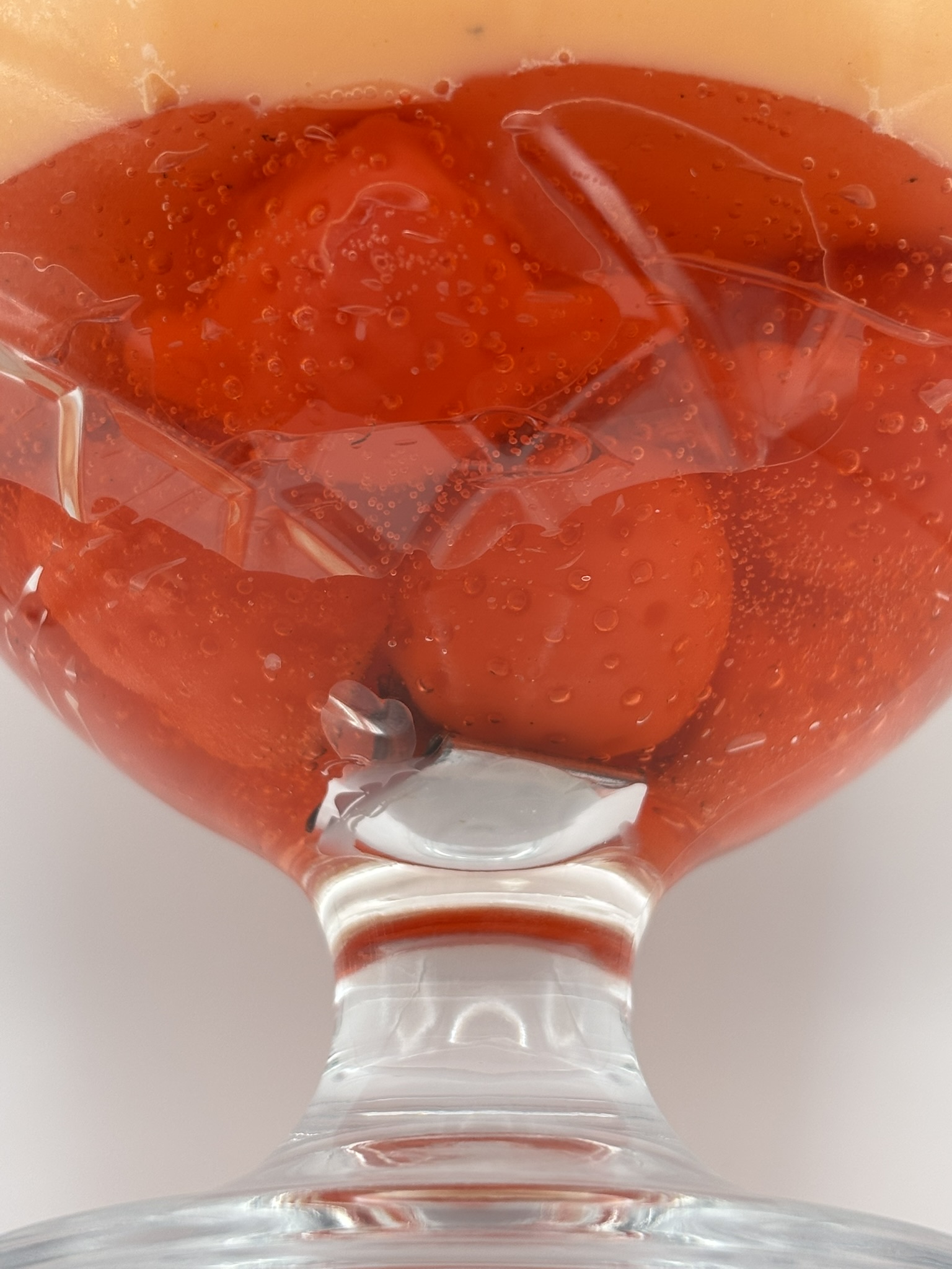 As it burns, the gel layer lights up the embedded strawberries, creating a warm red glow — perfect for cosy evenings.