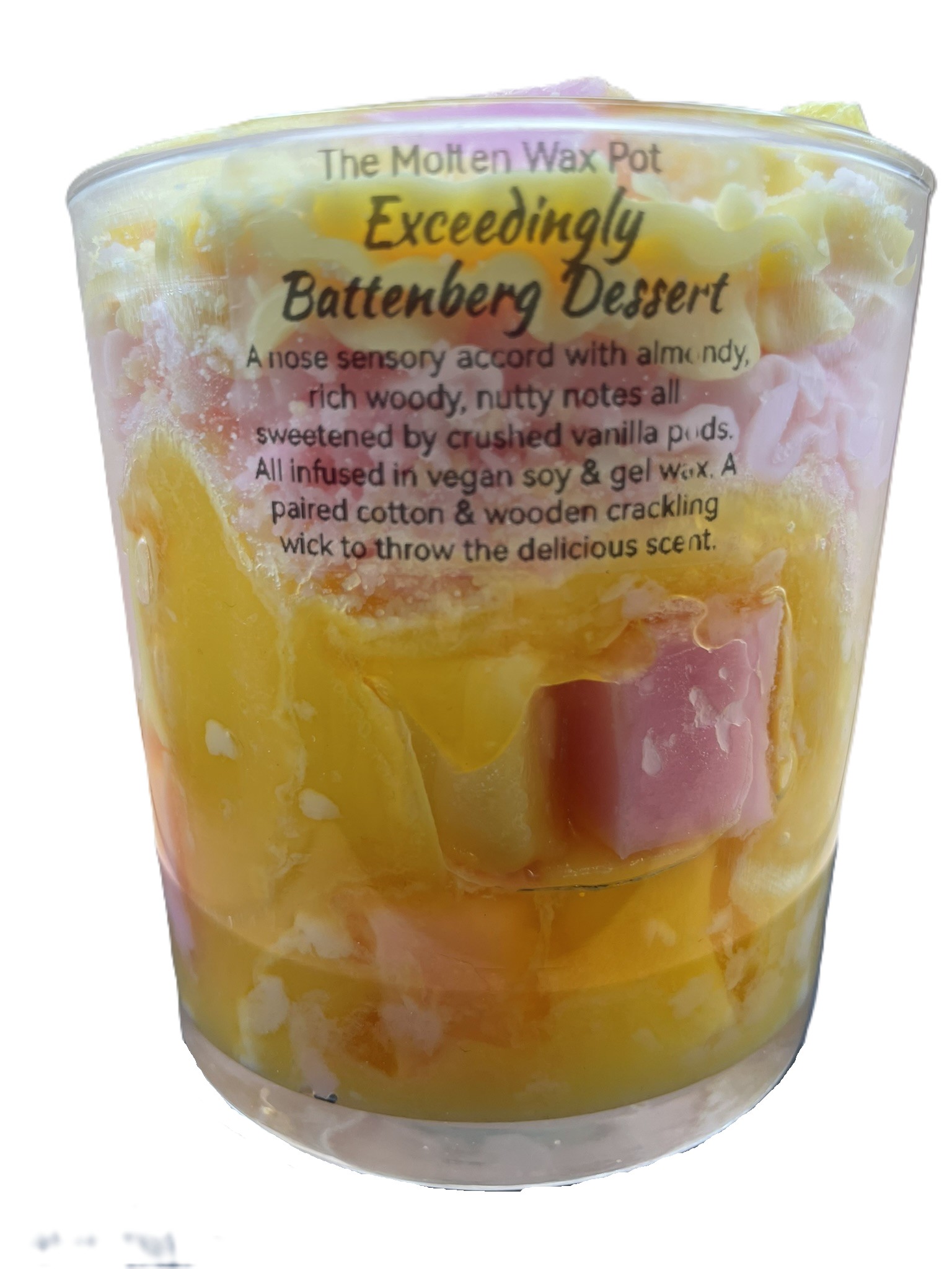 Bring a touch of nostalgic sweetness to your home with this handmade Battenberg Dessert‑Inspired Candle by The Molten Wax Pot. Styled like the classic pink‑and‑yellow treat, it fills your space with a cosy blend of almond and vanilla.