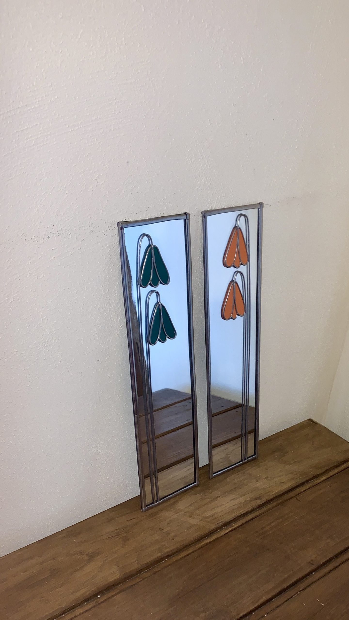 Two mirrors with green & orange flowers.