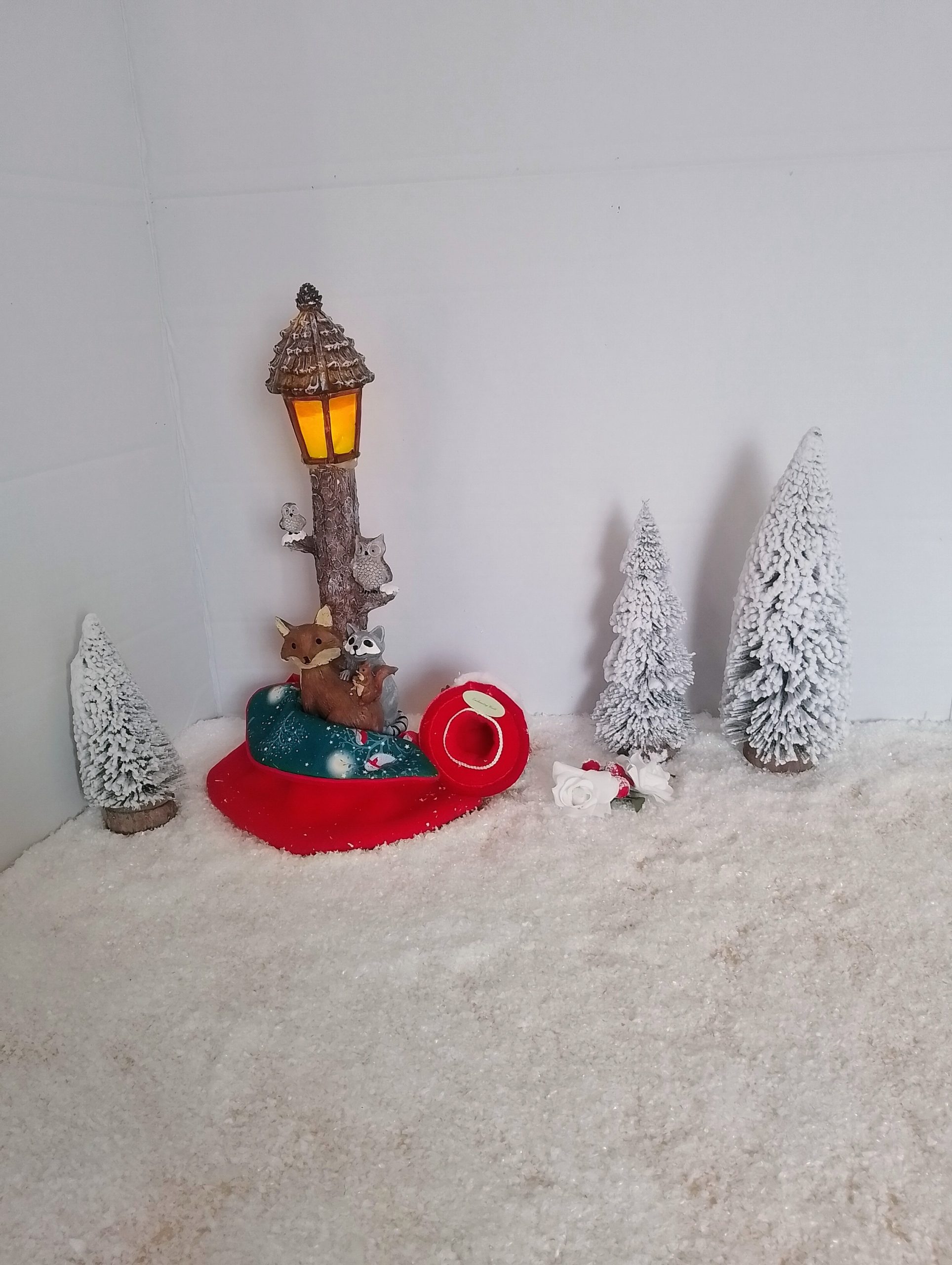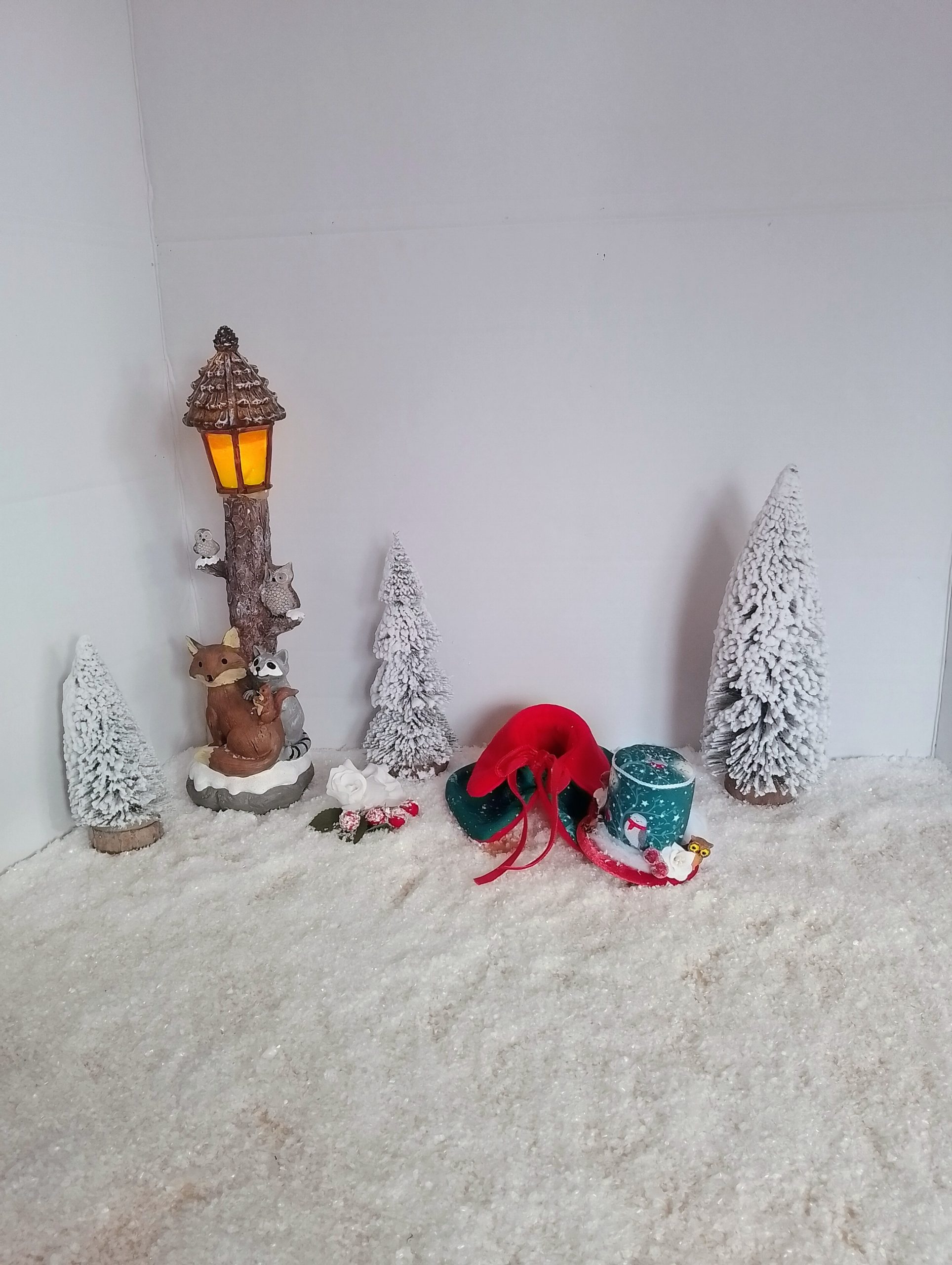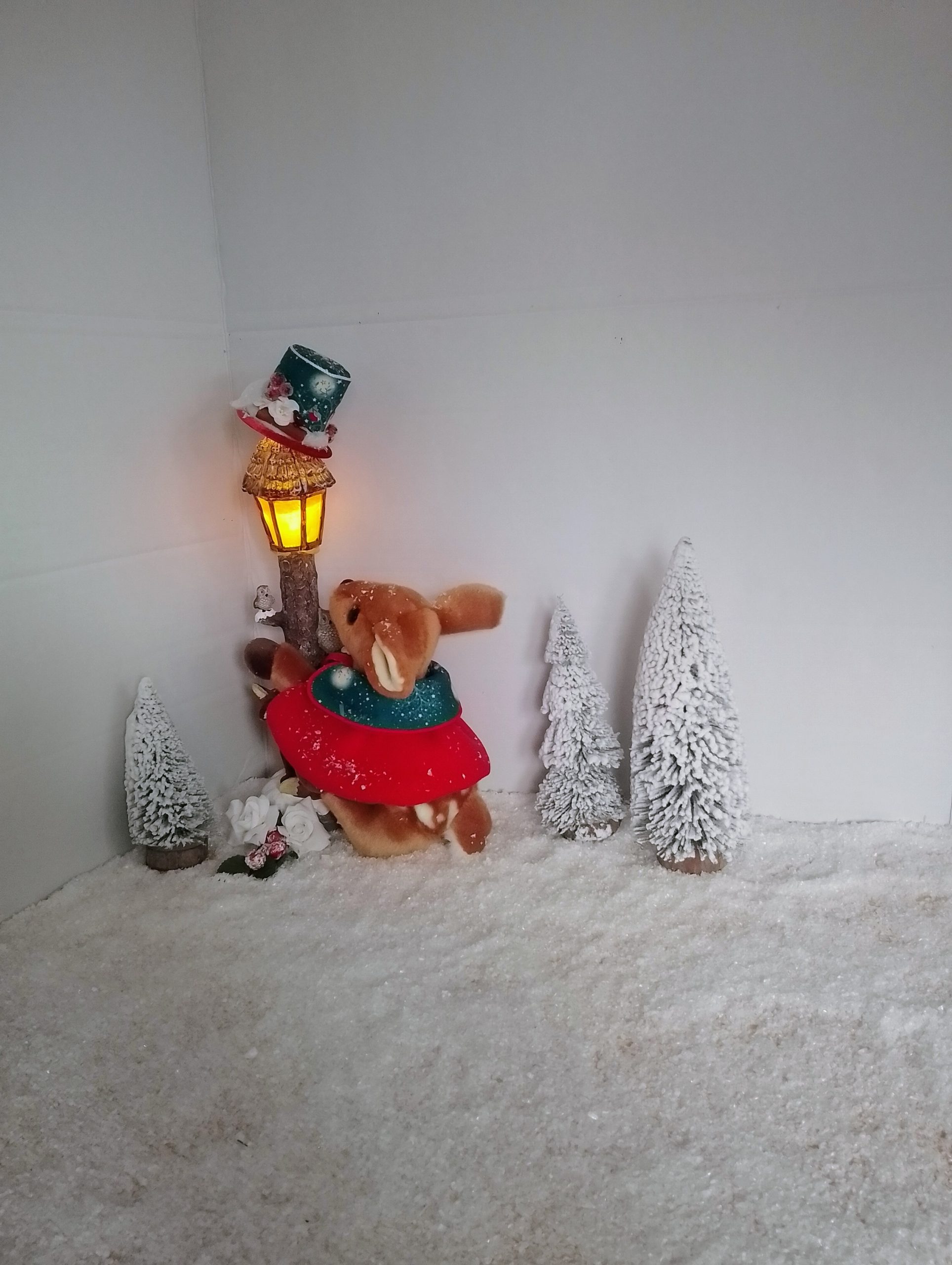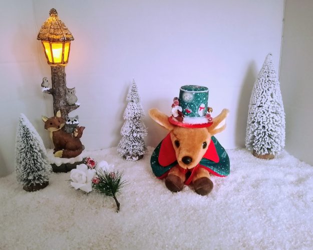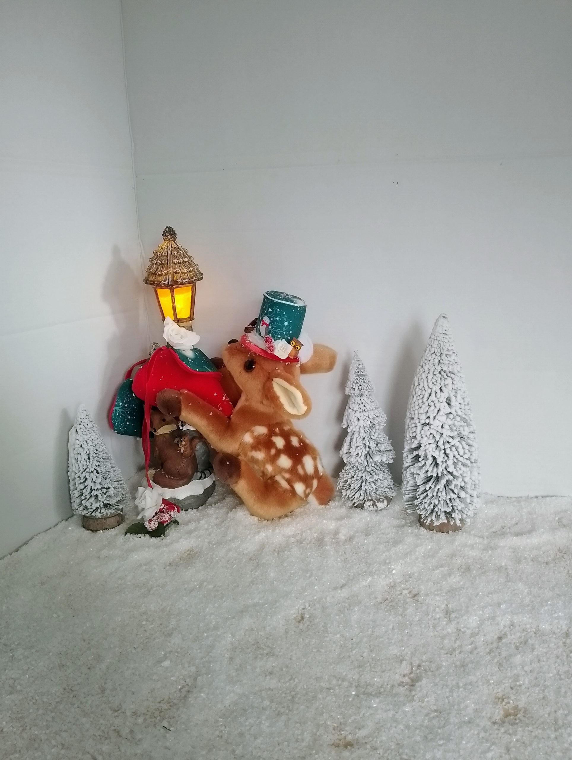 The listing is for the soft toy fawn, the cape and top hat, all other items in the photographs are props and are not for sale.Â